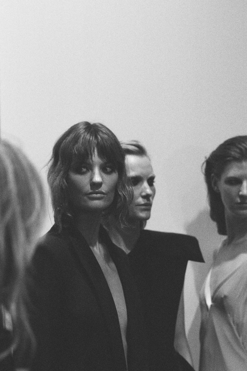 Backstage photography of the first Cue runway show, held as part of Australian Fashion Week 2023. Shot on 35mm black and white film.