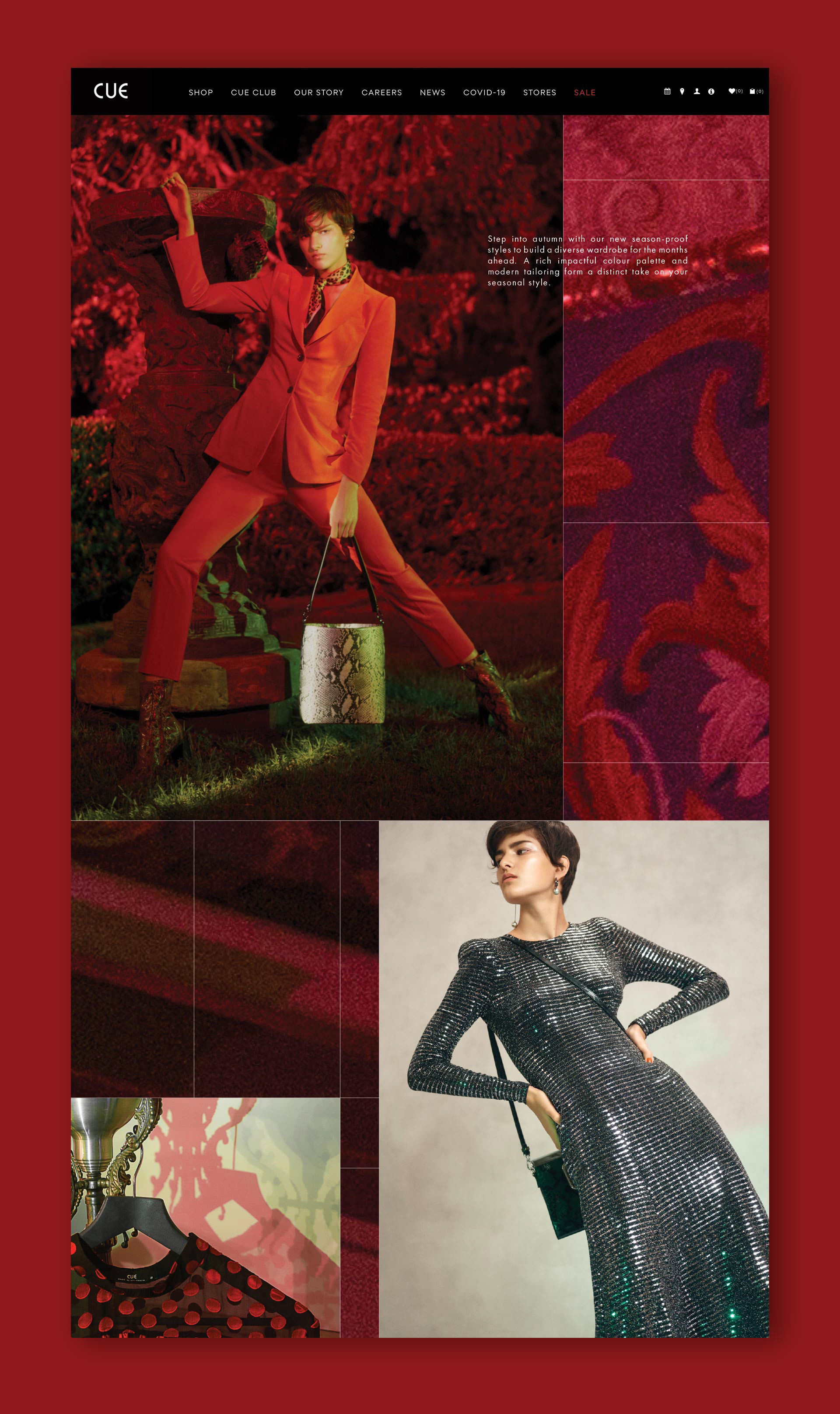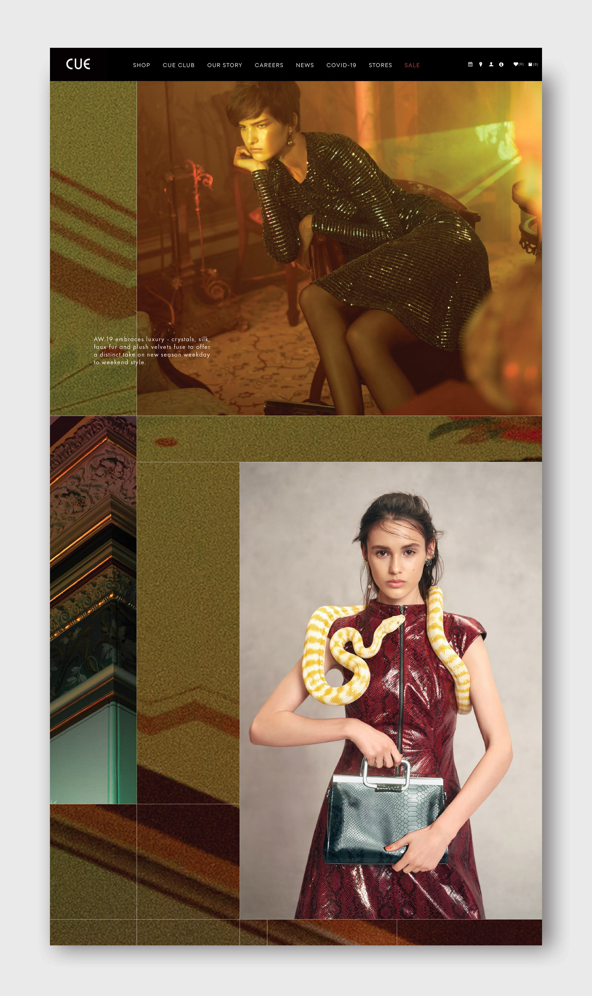 The graphic design of Cue's Autumn/Winter 19 Campaign. Work included website and EDM design, animated social media content, a logo refresh and still life photography. Campaign photography by Georges Antoni.