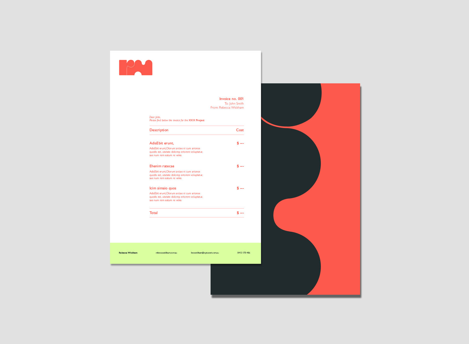 An identity design based on my initials, and representing my design style - fun, bold, playful.